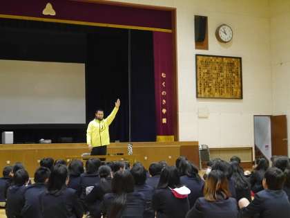 1月31日(火)、今日は北風が冷たい真冬の寒さとなりました。5・6年生では走り幅跳びの陸上競技選手、荒川大輔さんによるトップアスリート「夢・授業」がありました。荒川さんは、日本で数少ない8mジャンパーで、日本選手権で優勝、世界陸上の代表にも選ばれたトップアスリートです。