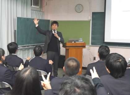 2月8日(土)2限の授業終了後、1・2年生を対象としたキャリア教育の一環で、金蘭会高等学校特任講師の的場 亮先生から、ご講話をいただきました。