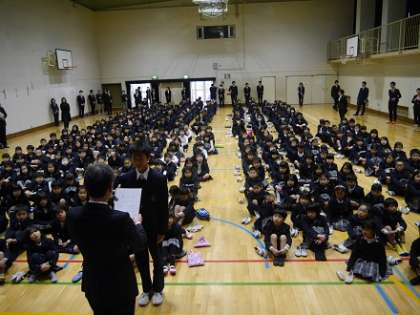 午前、体育館では卒業した6年生と9年生を除く「むくのき学園」の全児童生徒が一堂に会し、「修了式」を行いました。