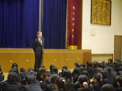校長先生から、全児童生徒の代表に学年を終えた修了証が手渡され、次のようなお話がありました。「修了式にあたって、1年のうちの一つの節目として、次年度を迎える決意、覚悟をしてください。そして、この1年をどう過ごしてきたか振り返ってみて、次につなげるという日にしてください。振り返ると、失敗やうまくいかなかったことも多くあったと思います。しかし失敗やつらい思いをした経験は人を育てます。失敗を乗り越えることによって人は成長してゆくのです。今後は失敗したとしても、それをチャンスと考え、乗り越える努力をしてください