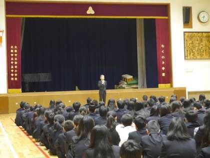 校長先生からの講話や、担当の先生からの学校生活における諸注意を、静かに集中して聴いていました。終始整然としたようすで、気持ちの良い1週間のスタートとなりました。