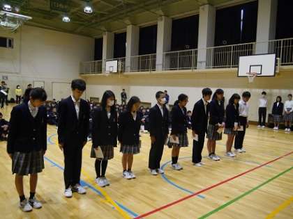 7年生から9年生が揃っての初めての生徒集会が行われました。