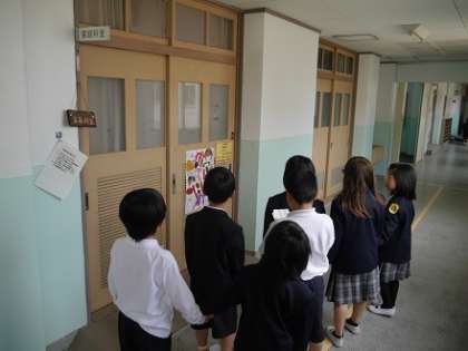 4月26日(水)、今日は雨模様の一日となりました。3限目、1年生のみなさんは「学校たんけん」をおこないました。1年生がこれから勉強や用事がある時に困らないよう、2年生が1年生の手を引いて、音楽室や理科室、図書室や保健室、事務室や管理作業員室、職員室や校長室などを案内してくれました。
