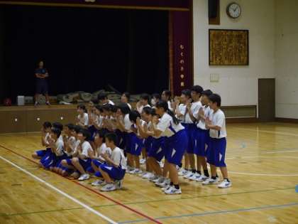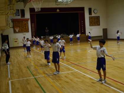 体育館では、7年生が運動会にむけて、団体演技の仕上げに取組んでいました。中学生として、またこのクラスとして初めての運動会です。中学生としての自覚と、クラスみんなで1つになろうというチームワークが感じられました。運動会本番が楽しみです。