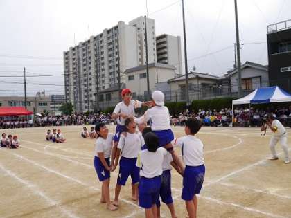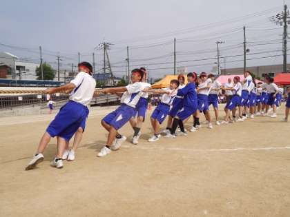「三本綱引き」はさすがの迫力です。自然と声がでます。こっちの綱で勝ったら、あっちの綱に走ってとびつけ!赤組白組、それぞれの総力戦です。おおいに力強さを表現することができたのではないでしょうか。