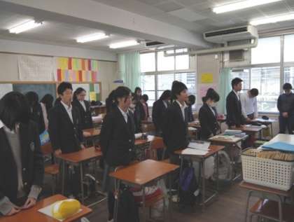 また、東北地方が大きな揺れに見舞われた午後2時46分に合わせて、全学年がそれぞれの教室で、授業を中断して1分間の黙とうをし、犠牲になられた方々に対する哀悼の意とご冥福をお祈りしました。私たちも東北の方々と手を携え「未来の設計者」として、復興をともに考えていきたいです。