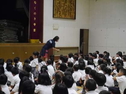 7月7日(金)、今日は曇り空が重く広がる、とても蒸し暑い朝となりました。体育館では1〜6年生までの児童朝会があり、副校長先生から、「気温が高くなくても、湿度が高いときは、汗が蒸発しないので体温が下がりにくく、熱中症を引き起こす可能性があります。こまめに水分補給をしましょう。」と注意喚起のお話がありました。