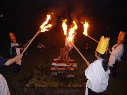 「知恵・優しさ・勇気・友情」の火が分け与えられました。そして一斉に中央のマキに点火。炎は天高く舞い上がりました。