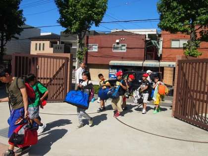 午後3時30分、バスがむくのき学園に到着し、教職員、保護者の皆さまとともに出迎えました。みんな元気です。