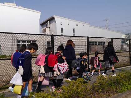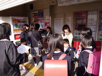 集合場所のうち5ヶ所では、教職員も8時前に点呼に向かい、低学年の児童にやさしく導くことができるように、中期区分の児童生徒に対しては、リーダーとしての自覚を促す指導を行っています。今は、通学区域外から各駅へ集合して来る児童生徒の中には、心配して駅まで一緒に来られている保護者の方もおられますが、徐々に慣れていってくれると思います。