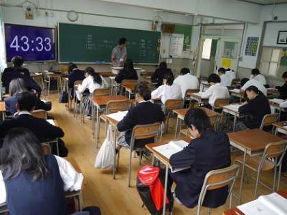 各教室では、生徒たちが真剣に問題に挑み、教室に鉛筆の音だけが響いていました。
