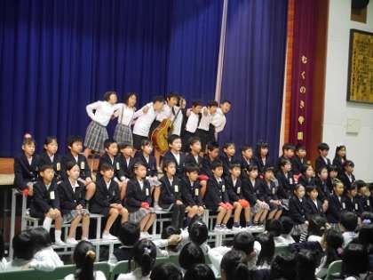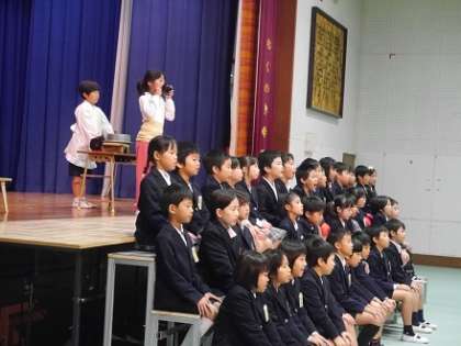 ■4年生の発表は、「中島音頭 〜2017〜」です。音頭・鐘・拍子木・踊り---それぞれが練習の成果を懸命に表現し、それらが合わさって地域に伝わる大切な文化である中島音頭となって完成していきます。真剣なまなざしと、のびやかな動きがとても印象的でした。