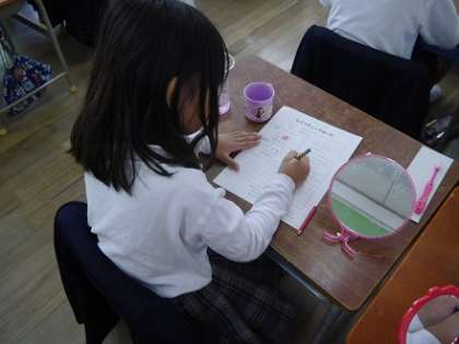 歯ブラシの持ち方や動かす方向など、正しい使い方を教えていただき、再び色素を塗ってもらい、きれいにみがけたを確認できました。学校医先生・歯科衛生士さん、お忙しい中ありがとうございました。