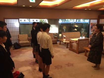 今夜の宿舎はきれいなホテルです。フロント前では、児童代表の進行で開舎式を行いました。宿舎の方々は、とてもやさしく迎えてくれました。