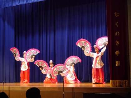 11月2日(木)午前、7年生から9年生は芸術鑑賞として、朝鮮に伝わる民族舞踊や楽器演奏などを鑑賞しました。美しい民族衣装を身にまとい、躍動感ある動きで太鼓を打ち鳴らしながらリズミカルに踊る様子を見て、楽しさが伝わってきました。また、「扇の舞」は、とても美しく優雅な舞で、会場全体が魅了されました。