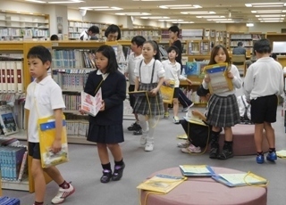 5月9日(金)午前、3年生は区内にある「大阪市立東淀川図書館」へ見学に出向きました。多目的室で館長さんから図書館にあるもの・ないものや貸出し・返却についての説明を受けました。その後、図書ボランティアの方に絵本「そらまめくんのベッド」を読んでいただきました。