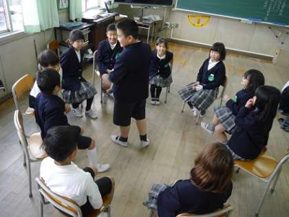 5限目、前期(1〜4年生)は縦割り班に分かれ、自分たちで考えたゲームを行うなど、異学年交流を通して、お互いを認め合い協力し合う集団を育てる取組を行いました。