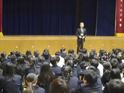 12月15日(金)、今日はよく晴れ、寒さも少し緩んだ朝となりました。体育館では、1年生から6年生までが揃う児童集会がありました。