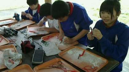 おみやげできた 〜勾(まが)玉づくり〜 ≪7年生≫ 一泊移住(2)