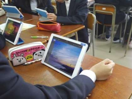 5月15日(木)4限、8年1組の国語の授業では、i Padを使った「詩」の授業がありました。