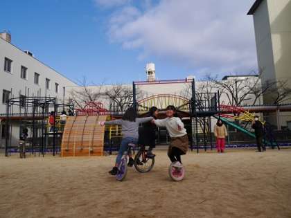 1月4日(木)、今日の大阪は冬型の気圧配置となり、とても寒い朝となりました。来週の始業式を待たず、小学生がいきいき活動で「むくのき学園」にやってきてくれました。寒さにも負けず、校庭では一輪車や遊具で遊ぶ子どもたちの元気な声が校舎にこだましています。