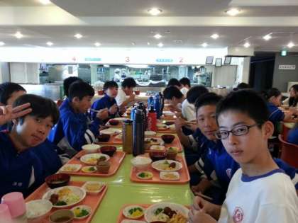 その後の朝食。メニューは、スクランブルエッグ・ミートボール・フライドポテト・うぐいす豆でした。朝食後は、分担区域の清掃を丁寧に行い、カッター乗船の準備や荷物の整理などを協力して行いました。
