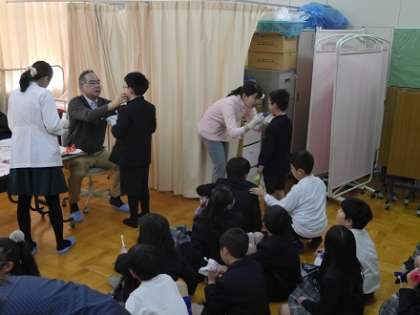 5限目、4年生では学校歯科医の先生によりフッ化物塗布が行われました。まず教室で、歯科衛生士さんの分かりやすいお話で「むし歯」や「歯こう」について学んだあと、保健室でフッ化物塗布を受けました。フッ化物は、むし歯の予防に効果的ですが、甘いおやつや飲み物のとりすぎや、しっかりブラッシングを行わないとむし歯になります。今日学んだことを忘れず、一生使う歯を大切にしてください。
