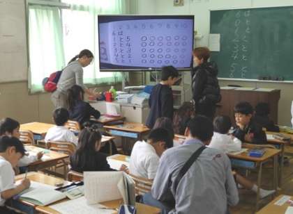 朝会の後はキャッチ活動登録者会議を行い、その後、小学校の各クラスの授業をみていただきました。