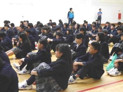 5月26日(月)、生徒集会では校長先生から、先週、地域や保護者の方々から直接的、間接的に寄せられた、今後の『むくのき学園』に期待を持たれているという、お話の紹介がありました。