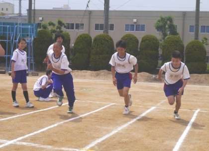 6月4日(水)2限、8年生の体育の授業では、運動会に向けて「行進練習」と種目別個人練習を行いました。今までの授業では、i Padで動画撮影をしたクラス行進を体育館の大型スクリーンに投影し、お互いのフォームなどをチェックしてきました。
