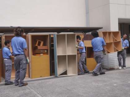 6月6日(金)、早朝から一日かけて、『もと中島中学校』の不用物品等の移転作業が、職員が立会いのもと、業者によって最終の搬出作業が行われました。各教室や管理室から運び出された備品は愛着のあるものもありますが、来年4月に「東淀川特別支援学校」として開校するため、整理がされました。