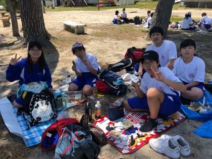 無事にJR近江高島駅 に到着しました。乗車マナーも良かったです。駅前ロータリーにで整列し、「フィールドワーク」 を開始しました。新緑が美しく、清らかに流れる小川のせせらぎに癒されます。十分に自然を満喫し、ゴールの「びわ湖青少年の家」 に到着しました。さあ、昼食。きれいな空気の中で、みんなとお弁当を食べました。ホッと楽しいひと時です。