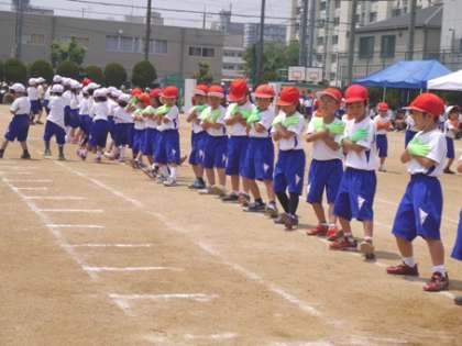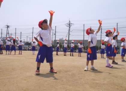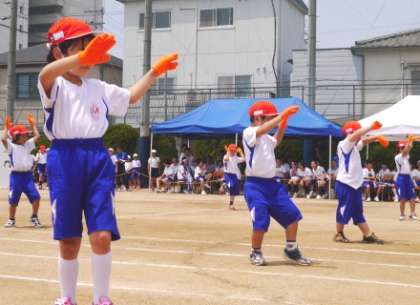 1・2年生の集団演技は「ようかい・忍者 大集合」でした。練習段階では、リズム感をつかむことと、移動のタイミングでの位置取りが難しかったようですが、本番は3色の手袋も映え、見事な出来栄えでした。