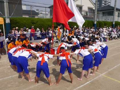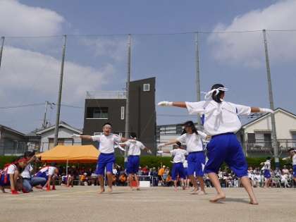 赤組・白組それぞれの応援団が、声のかぎりに応援の演技を繰りひろげました。風にたなびく大きな応援旗。児童生徒みんなで作るウェーブ。みんなの思いがひとつになる瞬間です。