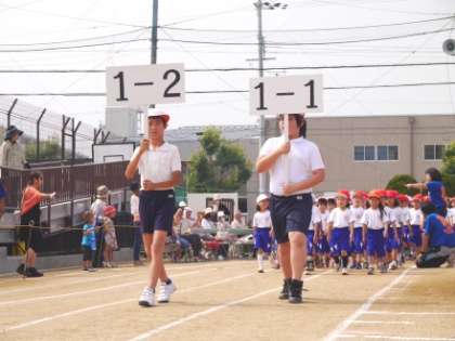 集合隊形も中学生が小学生をはさむように並び、体操隊形への移動などもスムーズに行えました。