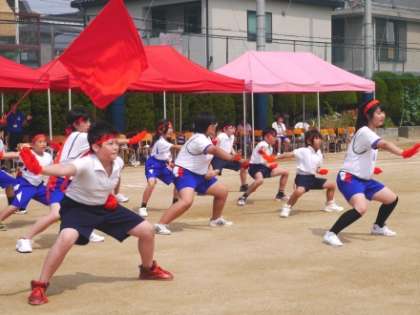 開会式に引き続き、「赤」「白」の応援合戦で互いの火花が散り、今からやるぞという気合と結束を示してくれました。1年生から9年生までが、こんなに素晴らしい 『絆』 で結ばれる学園は、他にあるでしょうか・・・。