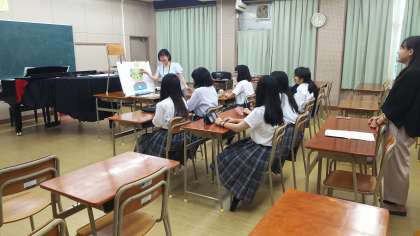 7月9日(月)、今日は真夏を思わせるような強い日差しとなり、とても暑い朝となりました。先週6日(金)、大雨の中、9年生では、大阪成蹊女子高等学校・金蘭会高等学校・興国高等学校の3校から先生をお招きし、「高校出前授業」の体験学習をおこないました。