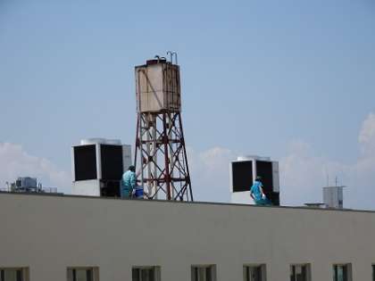校内では2学期に向け、この夏季休業中にしかできない作業が行われています。専門業者の方々が校舎全館をまわり、各教室のエアコンの点検 が行われました。特に室外機は屋上に設置されているため、灼熱の中 、チェックや調整が入念に行われていました。皆さん、「むくのき学園の子どもたちのために」 という思いで、次々と作業をこなされています。