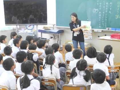 「わくわく本読み隊」は、1年生から7年生まで、隔週で水曜日に実施しています。児童生徒たちは、身を乗り出して目をキラキラと輝かせ、静かに聴き入っていました。絵本による読み聞かせによって、情景を頭の中で思い描くことは、感性豊かな想像力や表現力、読解力につながっていく と思います。