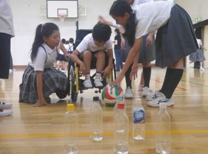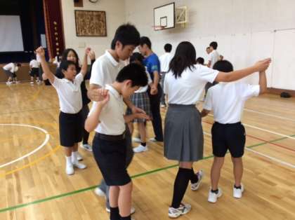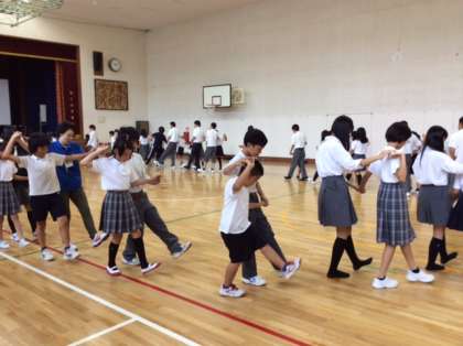 3年1組と8年1組は、体育館で「ボーリング」「輪投げ」「爆発たまごゲーム」「ボール運び」をし烈?に行いました。また、5年生2クラスと9年生2クラスは、体育館で先生も入って、なんと楽しくフォークダンス。