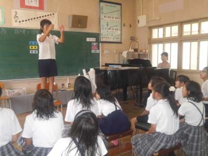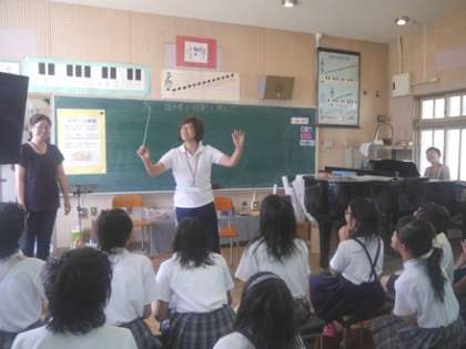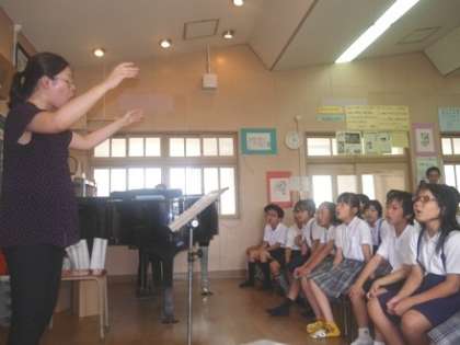 7月8日(火)6限、5年生は音楽の「合唱」で、先生方が協働授業を参観しました。『むくのき学園』では5・6年生の授業には、全教科で週1時間、中学校教員が小学校教員とともに授業を担当しています。