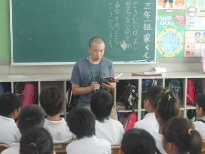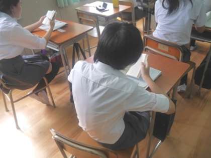 7月9日(水)始業前、今日は1年生から7年生までが「本読み隊」〜地域ボランティアの方による読み聞かせ〜【写真左・右】で、8・9年生が「朝読書」【写真中】でした。「本読み隊」の方々による読み聞かせは、今日が1学期最後となりました。暑い中、ご苦労様でした。7年生から9年生までの「朝読書」は、集会のない曜日に終業式まで続きます。