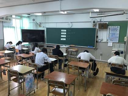 英検や漢検などに、小学校段階からチャレンジし、級別で中学校の生徒と一緒に受検している姿は、小中一貫校ならではの光景 です。