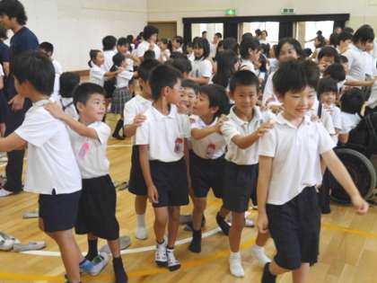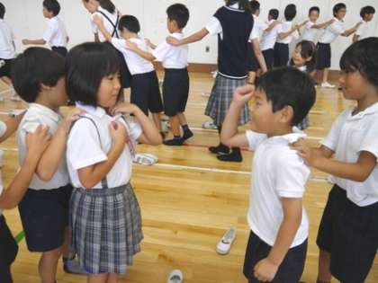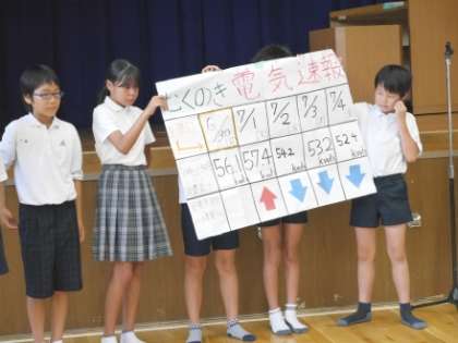 今日の児童集会は、どもだち'S委員会が企画した「じゃんけん列車」をみんなで楽しみました。暑さの中、体育館で歓声がこだましていました。その後、「大阪市小学校児童絵画・版画展」の賞状伝達や、環境委員会からの「節電への取組み」発表がありました。
