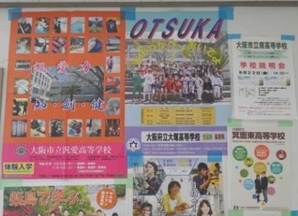 7月12(土)には、大阪府立柴島高等学校で「東淀川区8中学校対象の説明会と体験授業」【写真右】がありました。本校からも多くの生徒や保護者の方の参加があり、熱心に聞き入っていました。今後、あらためて夏休み前には、各高校説明会や体験授業への案内は「進路通信」などで詳細をお知らせします。