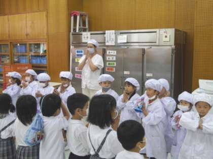 7月18日(金)、昨日が小学校は最後の給食日でした。昨日の献立は、「さけのしょうゆマヨネーズ焼き・とうがんのカレースープ・サワーソテー」で、いつものように全児童の完食率100%で、おいしくいただきました。約40日間は、ランチルームも児童の皆さんのにぎやかな声が聞こえず、静かな時を過ごします。