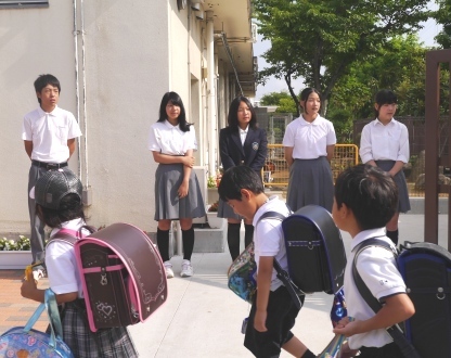 7月15日(火)登校時、正門前では生徒会役員の皆さんが、1学期締めくくりの 「あいさつ運動」 を展開してくれています。7月5日(土)の 「grow up むくのき」 〜人権討論集会〜 【学校日記参照】で、9学年の児童生徒がみんなでできることから始めようと呼びかけた「あいさつ」は、今日から生徒会の役員が率先して、皆さんに気持ちの良い声かけをしてくれています。