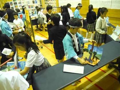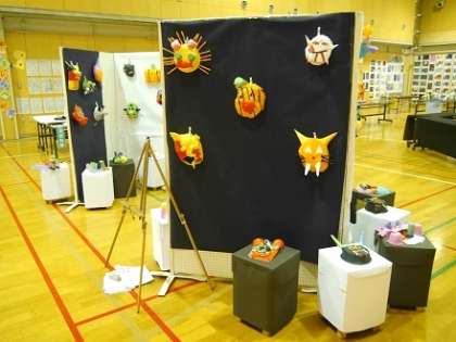 1年生から9年生まで、学年ごとのテーマ別に、絵画や彫刻など、心を込めて作られたものばかりです。特別な感性が輝き、圧倒される思いです。