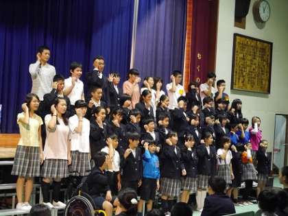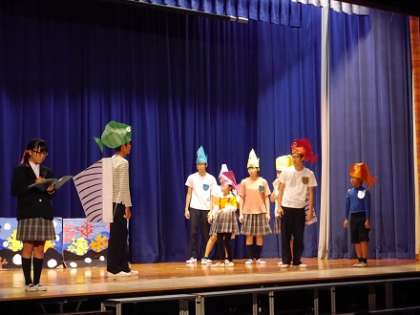 むくのき学園文化祭の第2部は、生徒会長のあいさつに続き、5・6年生のどきどきアワー・7〜9年生の四者活動という、本校が独自に取り組んでいる人権自主活動サークルの発表 から始まります。ちがいを認め合い個性や能力を伸ばす教育 につながる取組みです。