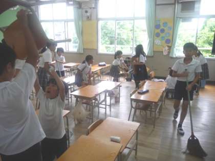 お互いに意識し合ってか、児童生徒たちは丁寧に教室や廊下、便所や手洗い場をきれいにしてくれました。このように大清掃の時間が、ほのぼのとしたものになりました。